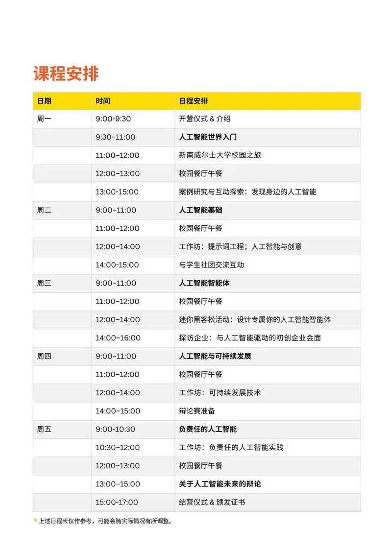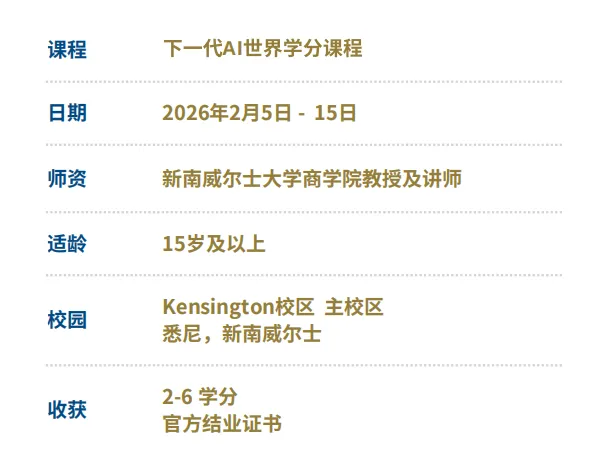 UNSW商学院的全职教授和讲师面授课程,结合了案例研究、小型编程马拉松以及实践工作坊,深入探讨人工智能如何改变我们的世界。在冬校期间,学生们将使用人工智能工具进行实验,构建简单的人工智能原型,并参与前沿话题的讨论。课程最后将举行一场竞争性的辩论,届时学生们将展示并阐述他们对于人工智能未来发展的看法,并获得教授们的点评。
